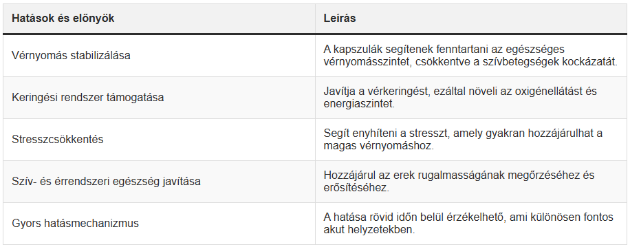 Az összetevők hozzájárulhatnak a normál vérkeringés fenntartásához és a szívizom működésének támogatásához.