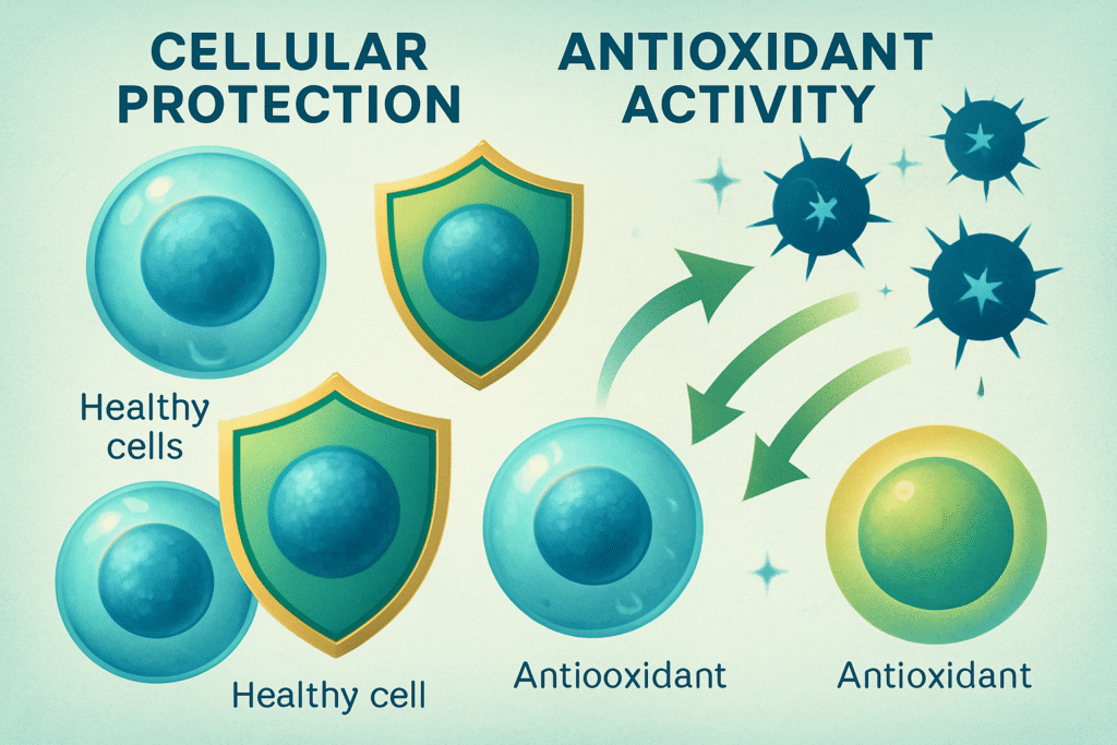 Erős antioxidáns tulajdonságokkal rendelkező összetevők, amelyek segíthetnek a sejtek védelmében az oxidatív stressz ellen.